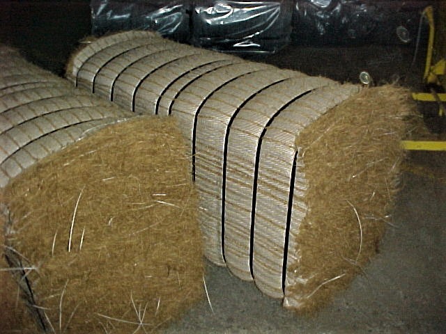 For transportation purposes in order to maximise the loading capacity inside a container, the pads are compressed and strapped into a bale.