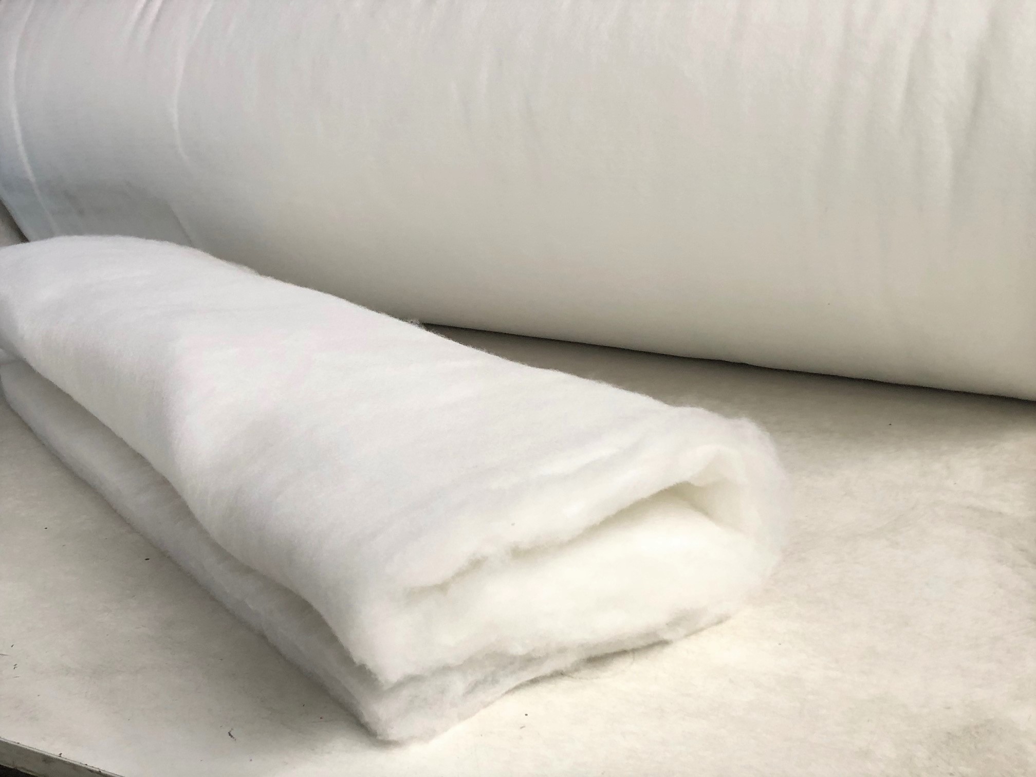 Polyester wadding or batting is a layer of insulation used in quilting between a top layer of the upholstery ticking and a bottom layer of the backing material. It is also used for duvets as it is washable and suitable for people with allergies. Our thermobonded polyester wadding has some unique features that include right weight/volume ratio for styling and designing, exceptional dimension and volume stability and fibre uniformity. It is produced in rolls and it is made up of virgin staple polyester fibre mixed with low melt fibre and passed through an oven to acquire its thermobonding properties. For transportation purposes in order to maximise the loading capacity inside a container, the polyester wadding rolls are vacuumed packed.